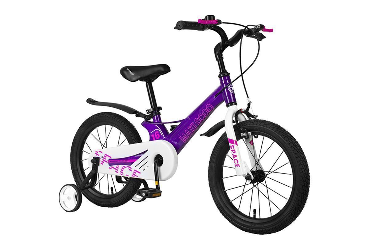 Детские велосипеды от 3 до 6 лет с диаметром колёс 16-18 дюймов — это огромная коллекция ярких, надежных, безопасных моделей авторитетных брендов, которые наш интернет-магазин предлагает на выгодных условиях. Велосипед MAXISCOO "Space", Стандарт, 16" (2022) — образец современного подхода к созданию байков для юных гонщиков. Выпущен в 2022 году. Прочная и детально продуманная конструкция, удобный руль, идеально подходящие для разных покрытий колеса (16" дюймов), тормоза Ободные (V-brake), обеспечивающие точное и безопасное управление, — все это делает его отличным вариантом для поездок или серьезного увлечения велоспортом.